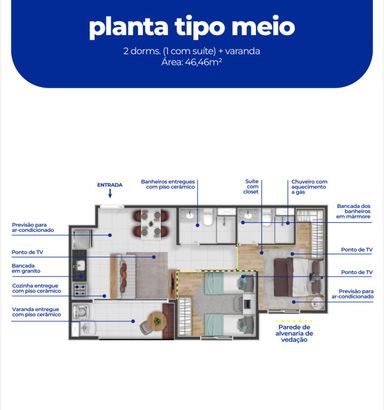 Apartamento à Venda com 2 quartos, 2 banheiros, 1 vaga e 50m² a partir de R$ 264.000 Jardim Luiz Cia, Sumaré-SP