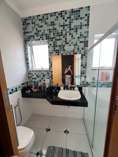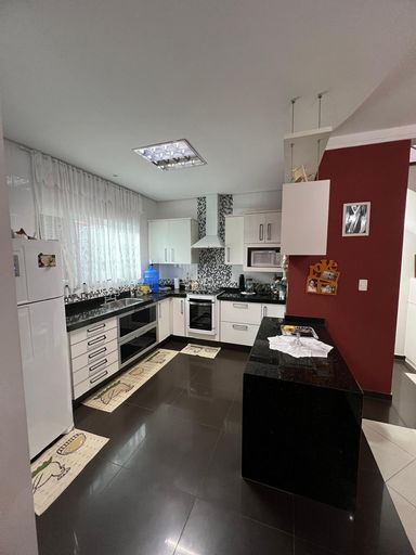 Nos fundos, o sobrado oferece uma área de churrasqueira completa, ideal para momentos de lazer e confraternização em família, sem a necessidade de adaptações. A garagem é coberta para dois veículos e o acesso ao imóvel é feito por portão eletrônico, trazendo mais segurança e praticidade.