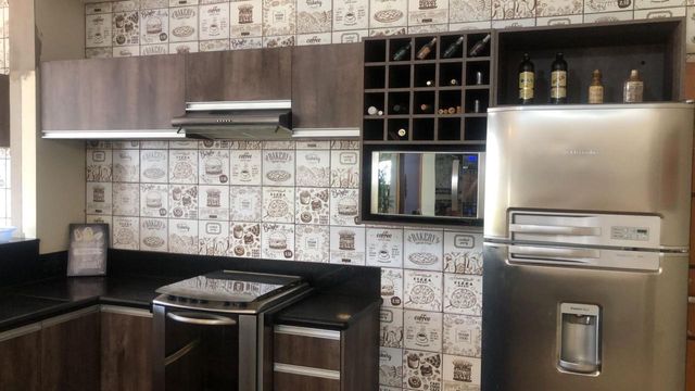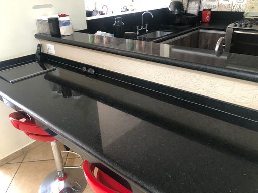 A cozinha é planejada, com pia em granito São Gabriel e duas cubas em inox. Conta ainda com despensa com prateleiras e duas lavanderias, trazendo funcionalidade ao dia a dia.